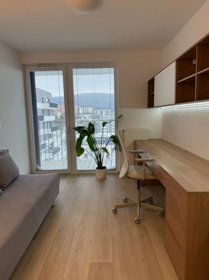 Byt sa nachádza na 8. poschodí z 9, je orientovaný na západ a ponúka krásny výhľad na Devínsku Kobylu v tesnej blízkosti lesa.