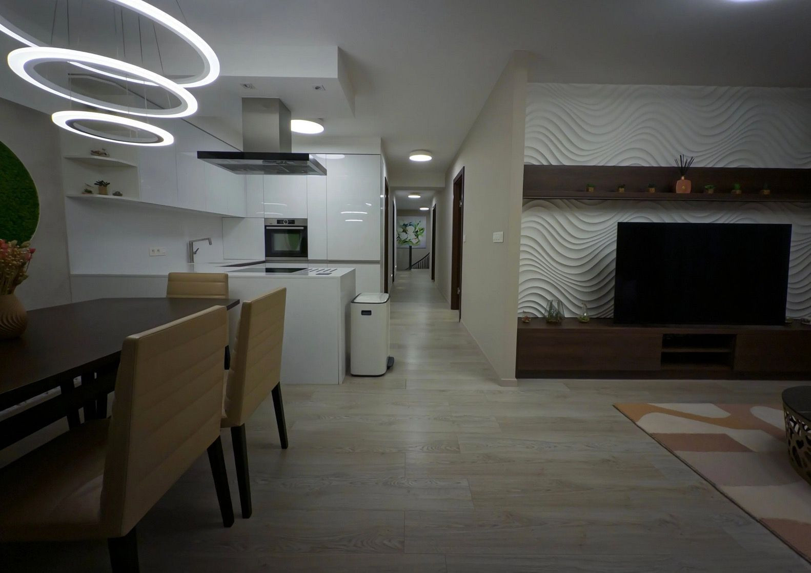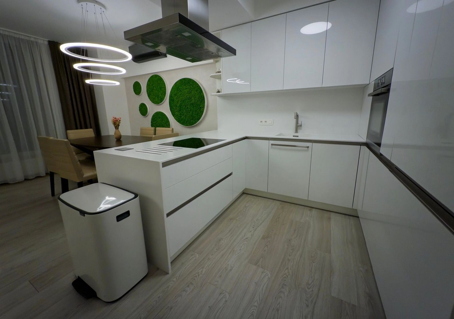 Kuchyňa na mieru s kompletným vybavením a tichým digestorom s priamym odťahom von.