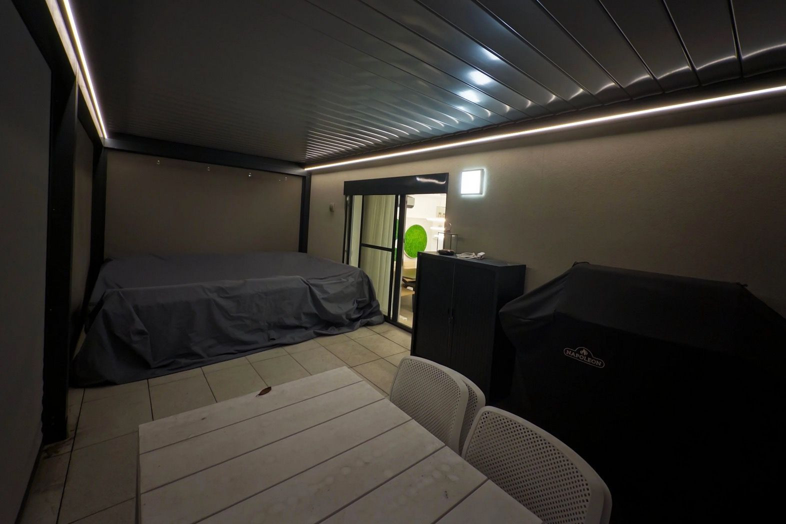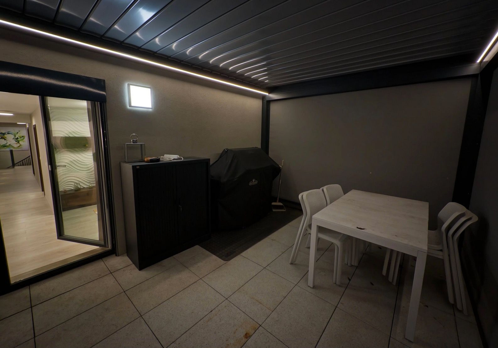 Byt disponuje tromi samostatnými terasami s rôznym využitím: Hlavná relaxačná terasa so špičkovou bioklimatickou pergolou (2 nezávislé zóny), plynovým grilom Napoleon a talianskym dizajnovým nábytkom.