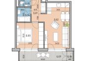 Rozloha bytu je 57m2 (46 interiér + 11 loggia so skladom)