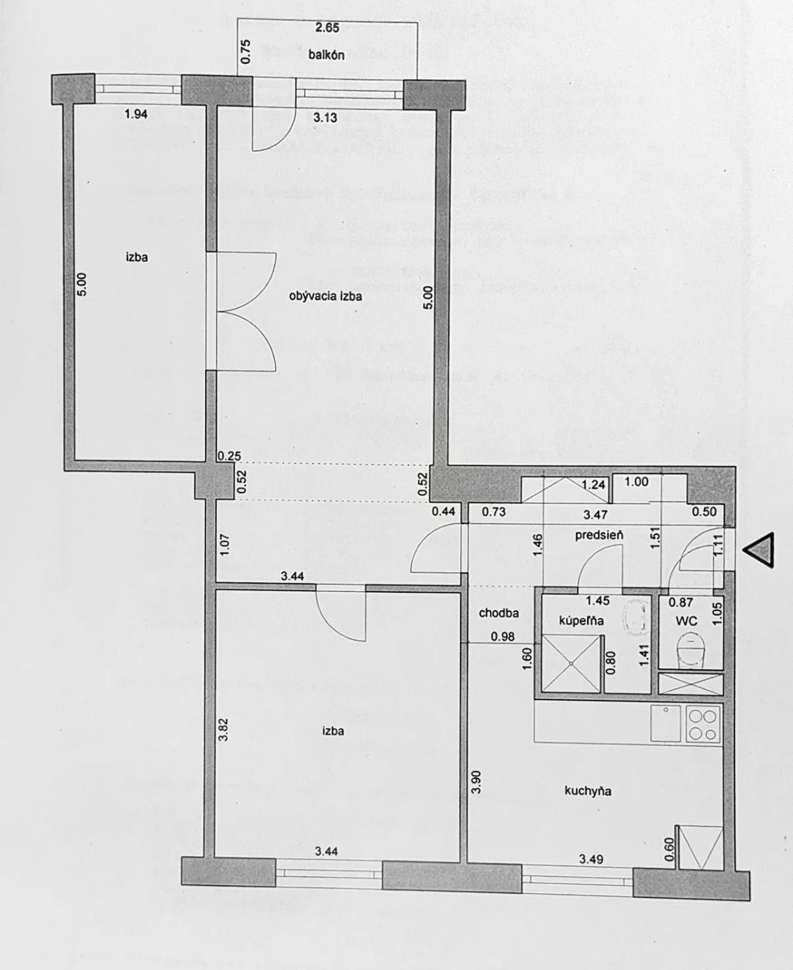 Výmera: 65,7 m² + balkón 1,9 m² + pivnica 3,4 m²