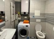 V kúpeľni nájdeš sprchový kút, práčku so sušičkou a veľa úložného priestoru.