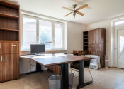 Kancelária: 2x kancelársky stôl, vstavaná skriňa, kancelárske skrine - 4x, klimatizácia, plne vybavené WC