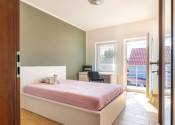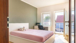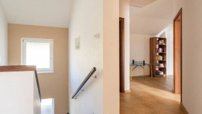2 nadzemné podlažie: Schodisko s chodbou, 3 izby so šatníkmi a vstavaným nábytkom na mieru, kúpeľňa/práčovňa, samostatné WC, priestranný balkón prístupný z každej izby