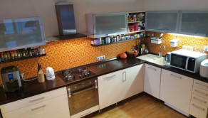 - samostatná obývacia izba spojená s kuchyňou (práčka, umývačka riadu, chladnička s mrazničkou) a výstupom na priestrannú zasklenú lodžiu
