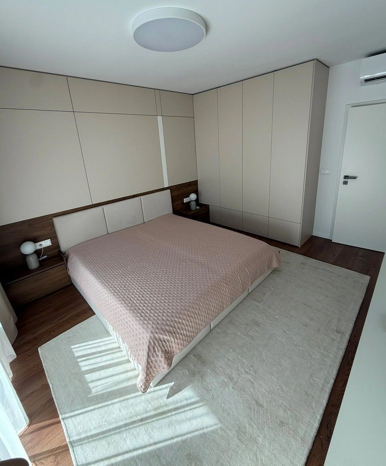 Spálňa je zariadená vstavanou skriňou, manželskou posteľou, matrace na mieru, nočnými stolíkmi na mieru a modernou TV stenou so skrinkami pod televízorom. Tretia izba je voľná, vybavená vstavanou skriňou so zrkadlami a klimatizáciou.