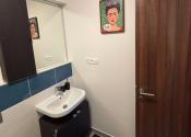 Kúpeľňa je kombinovaná s toaletou a prístupná zo vstupnej chodby.