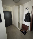Do bytu sa vchádza cez vstupnú chodbu, v ktorej sa nachádza skriňa na topánky a vešiak, vstavaná kombinovaná práčka so sušičkou a ďalšie úložné priestory.