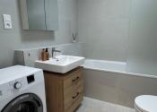 Byt sa predáva kompletne zariadený – kuchynská linka so vstavanými spotrebičmi (umývačka riadu, rúra, varná doska, mikrovlnka, chladnička s mrazničkou), práčka, TV, posteľ, skrine, sedačka, klimatizácia v obývacej izbe, rekuperácia v každej miestnosti.