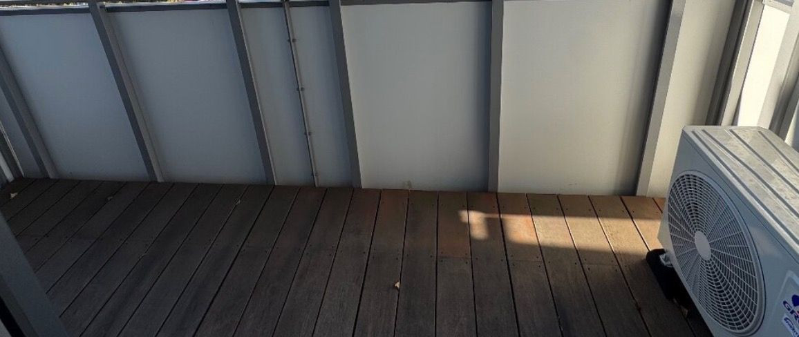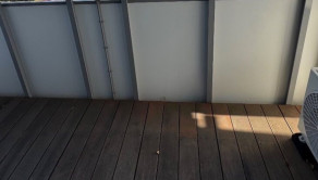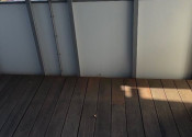 balkón s drevenou podlahou a elektrickými zásuvkami