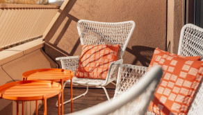 Južná orientácia zaručuje slnečný a obývateľný exteriér počas celého roka. Terasa je kompletne zariadená a pripravená na relax.
