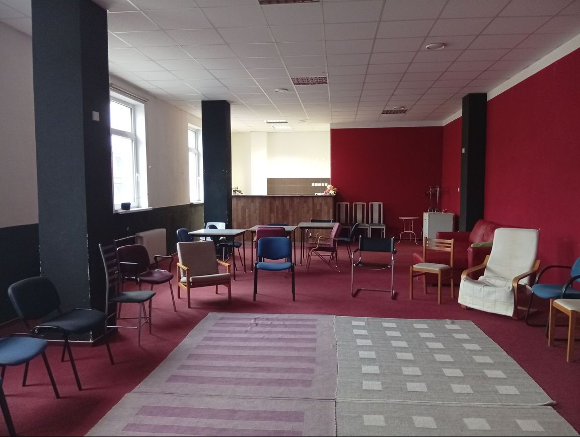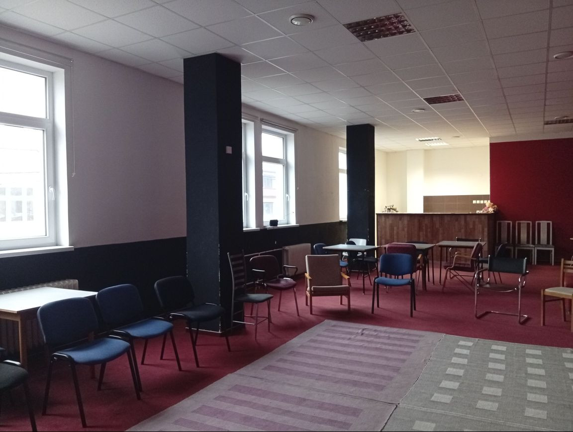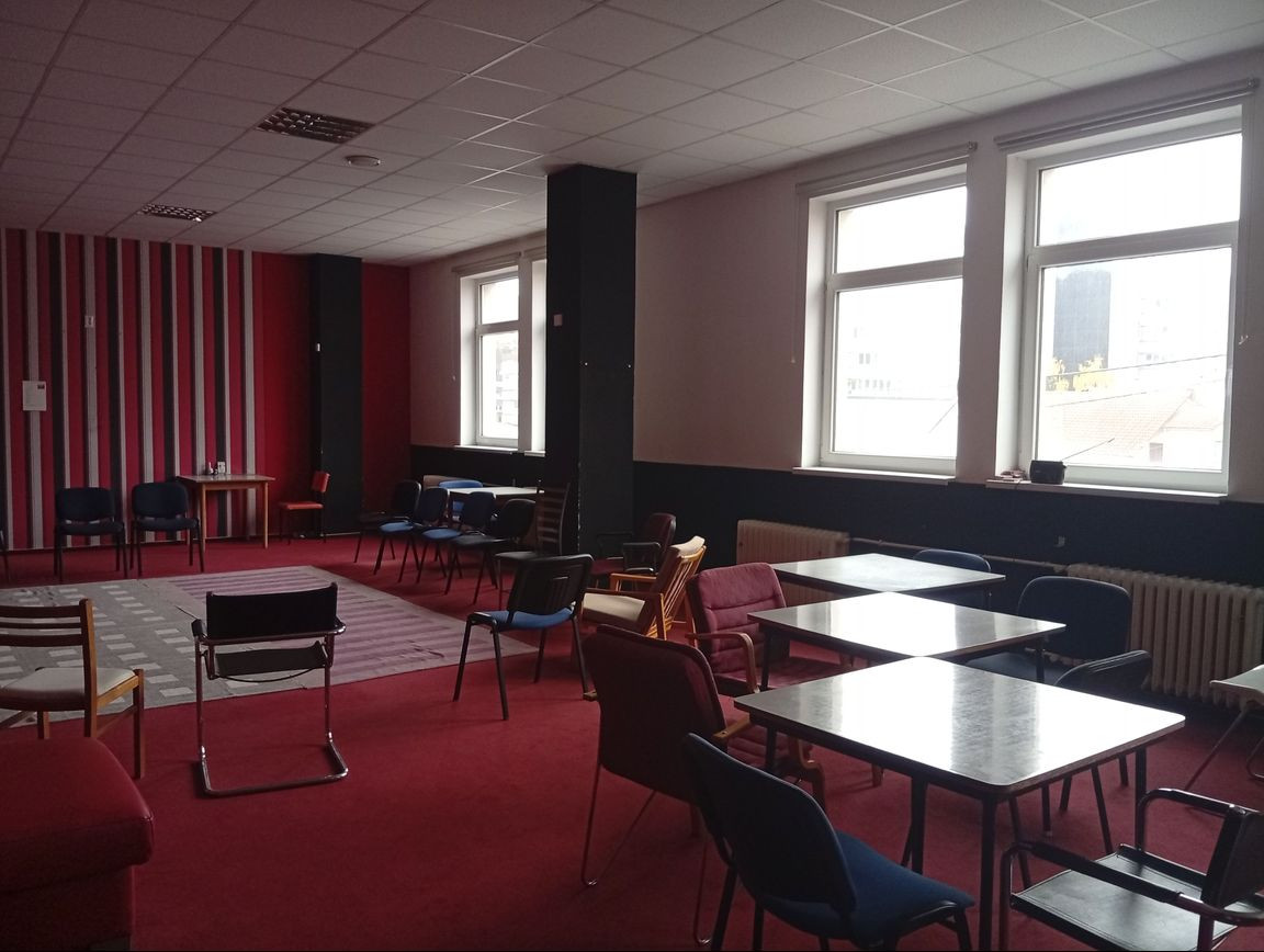 Súčasťou ponúkaných priestorov je vlastný kuchynský kútik s barovým pultom a malá skladová miestnosť. Na poschodí spoločné WC. Priestory sa nachádzajú na druhom poschodí, bez výťahu. V hodné pre kluby, krúžky, záujmové aktivity, ale aj ako špecifická kancelária (priestor v minulosti slúžil ako kartová herňa).